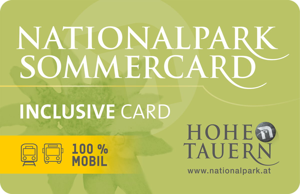 Urlaubsgäste, die bei den teilnehmenden Partnerbetrieben in der Ferienregion nächtigen, erhalten von 1. Mai bis 31. Oktober von ihren Gastgebern (Hotels, Pensionen, Bauernhöfe, Ferienwohnungen) die „Nationalpark SommerCard“ geschenkt. Neben über 60 Gratis-Eintritten und weiteren Ermäßigungen kommen Gäste damit in den Genuss folgender Mobilitätsleistungen für die Gesamtdauer des Aufenthaltes inklusive An- und Abreisetag: